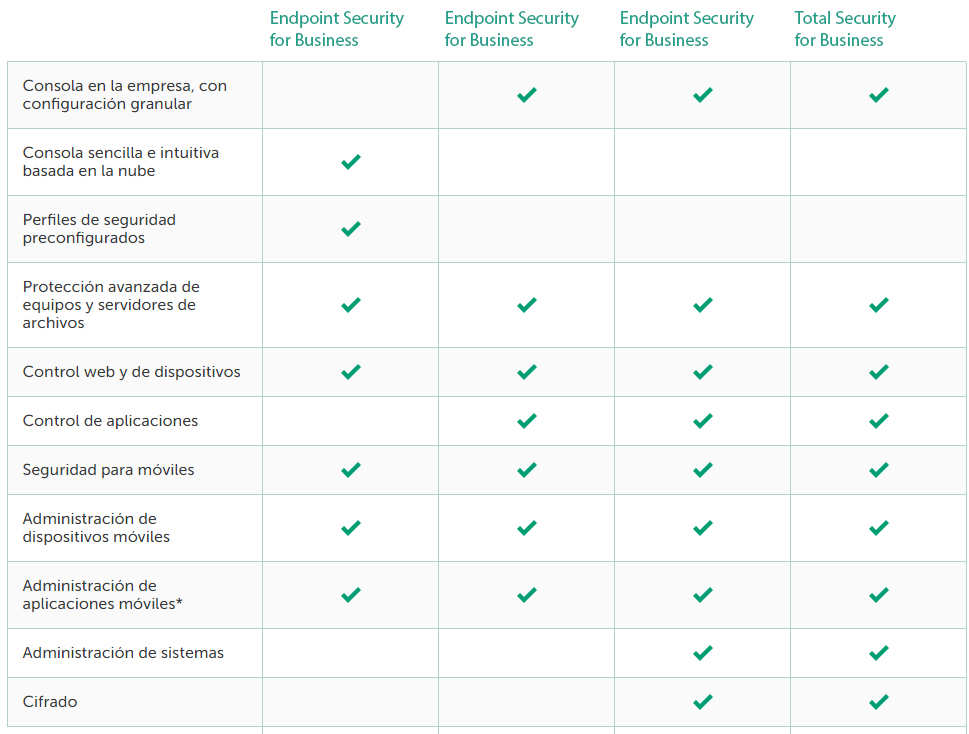 • No se requiere hardware adicional, ya que la consola de administración se encuentra en la nube: Kaspersky Lab se hace cargo de la infraestructura.